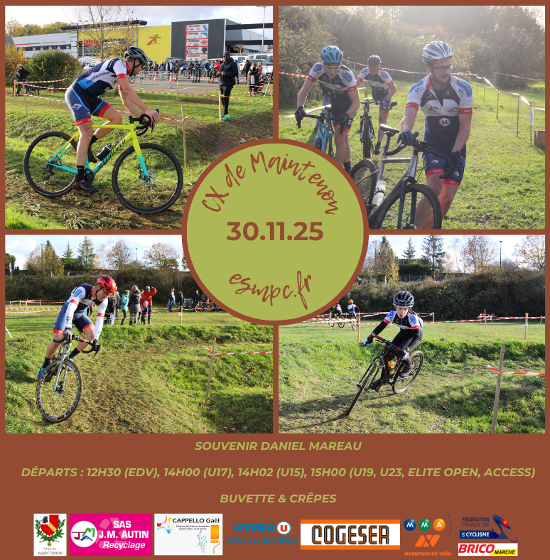 Nous vous donnons rendez-vous pour notre traditionnel Cyclo-Cross de la Ville de Maintenon, Souvenir Daniel Mareau, le dimanche 30 novembre 2025.
